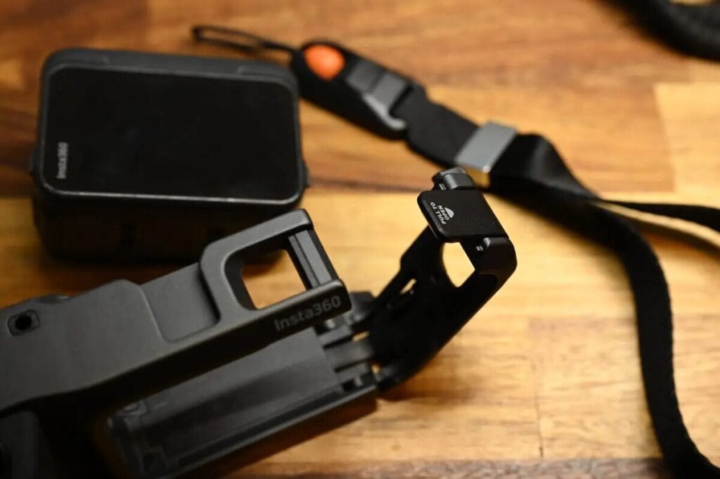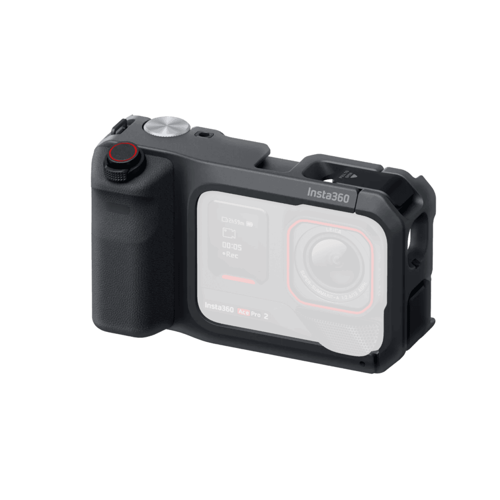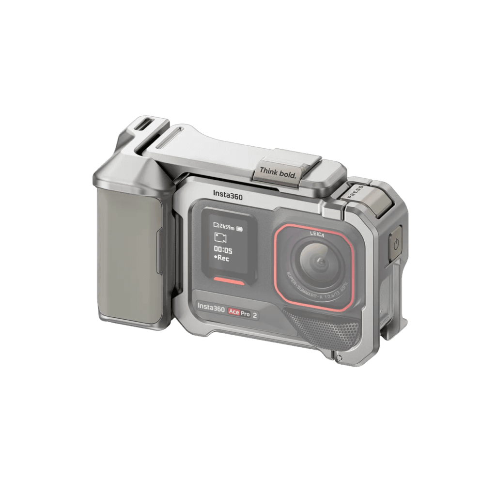 Insta360 Ace Pro 2 街拍套裝內含五項實用配件,分別為:多用途邊框、冷靴快門按鈕、裝飾性冷靴蓋、手柄以及腕帶,完整滿足街頭攝影的使用需求。