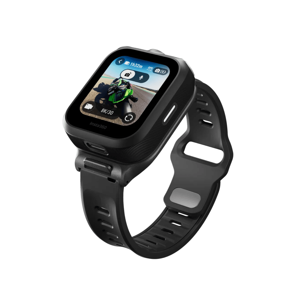 This is a Bluetooth remote control that allows you to operate your 360 camera remotely. It can be worn like a smartwatch or mounted on a motorcycle. The GPS watch display mirrors the camera’s screen, and the touch controls work exactly the same as on the camera itself.