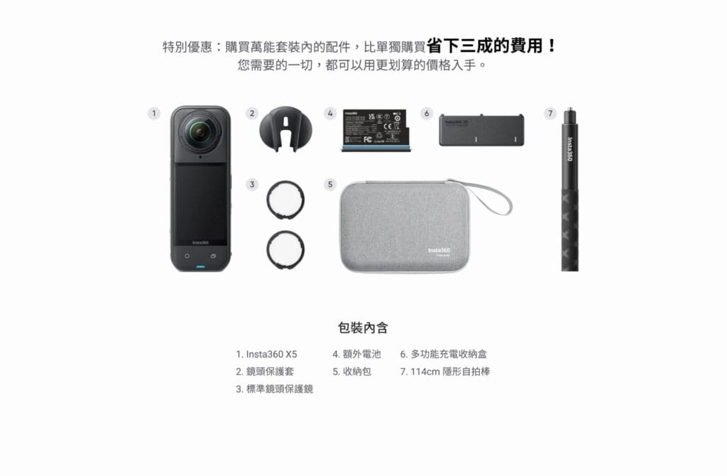 In addition to the universal accessories, Insta360 introduced several exclusive accessories following the launch of the X5. Having these accessories can greatly enhance your shooting efficiency with the X5. Check out the must-have list below for reference.
