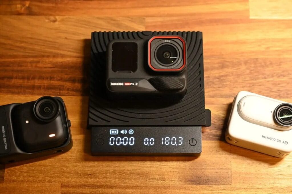 我實測比較了 GO Ultra 與 Ace Pro 2 的重量。GO Ultra 整機僅重 160.8g,比 Ace Pro 2 輕約 20g。最令人印象深刻的是,GO Ultra 的單機重量只有 53g。在如此輕量化的機身條件下還有這樣的畫質水準,在現階段市場中相當少見,也是 GO Ultra 的優勢之一。