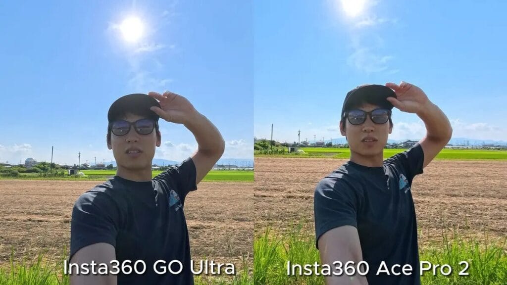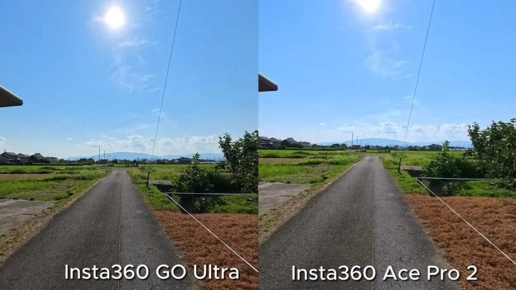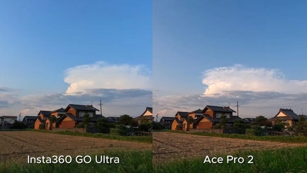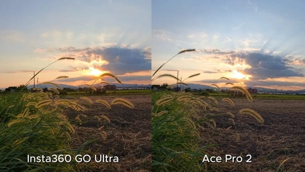 比較後,我發現其實 GO Ultra 在高光控制方面的過曝情況略少一些。仔細觀察可以看出,Ace Pro 2 在雲層層次的呈現上更具立體感,同時能保留更多田野細節,說明 Ace Pro 2 的8K 解析度在畫面細節表現上更加有優勢。