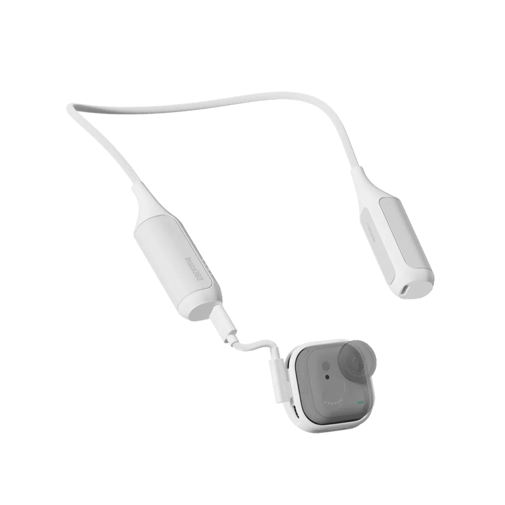 Insta360 GO Ultra 機身僅 53 克,採用「小方塊」設計,相較前代稍重但依舊佩戴無感。可輕鬆磁吸於衣物、帽子或背包上,解放雙手,適合長時間隨身拍攝。不論是透過磁吸的方式固定在物品上,還是配在衣服上,都能隨時隨地開拍。藉由標配的簡易夾具與磁吸吊墜,GO Ultra 同樣能像 GO 3S 一樣輕鬆錄製第一人稱 POV 視角,錄製時解放雙手。