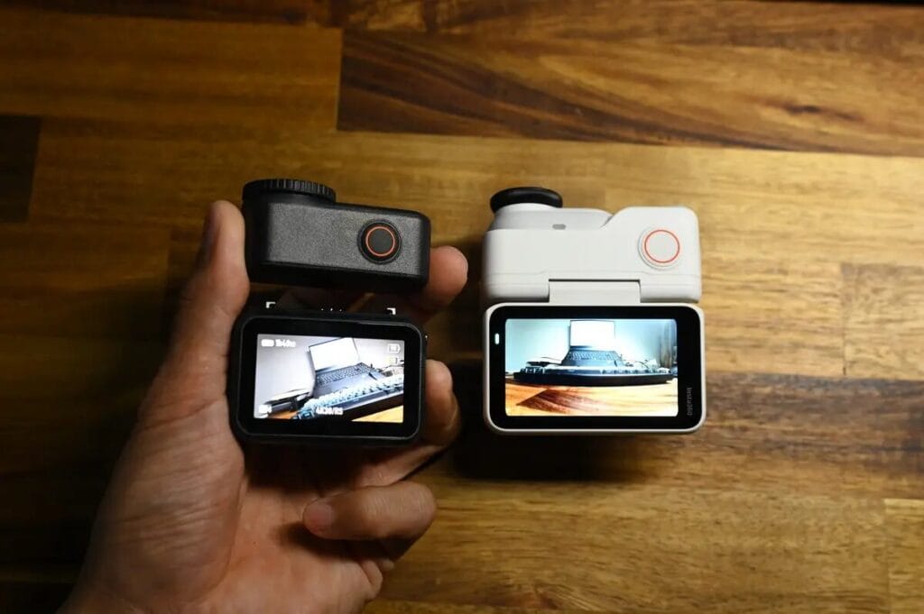 Osmo Nano 支援 DJI Mic,但接上麥克風後無法顯示預覽畫面,這個設計對邊確認構圖邊收音的使用情境來說,確實不太方便。相比之下,GO Ultra 透過更新後可以同時連接 Insta360 Mic Air 並查看 Action Pod 的畫面預覽,實用性更高。